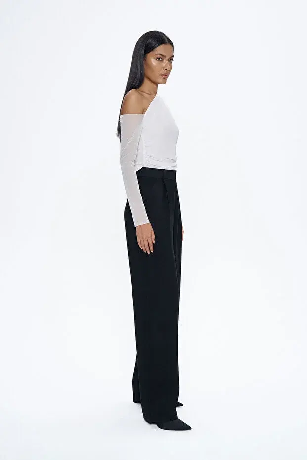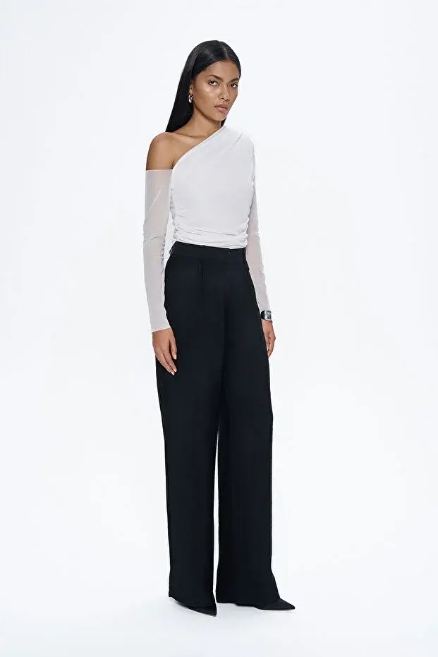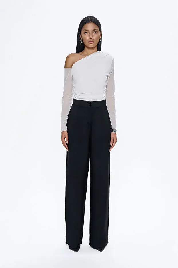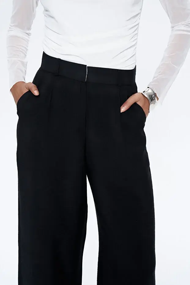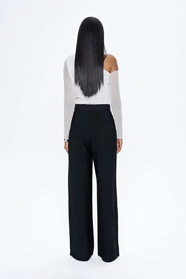 Yüksel Bel Bol Paça Pantolon Siyah